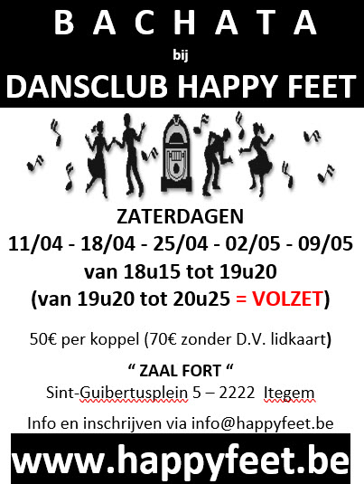 Goed nieuws voor alle dansliefhebbers! Dansclub Happy Feet start met een reeks Bachata-lessen. Zin om deze sensuele en energieke dans te leren? Dit is je kans!