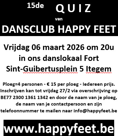 Dansclub Happy Feet organiseert haar 15de Quiz — en jij bent van harte welkom!